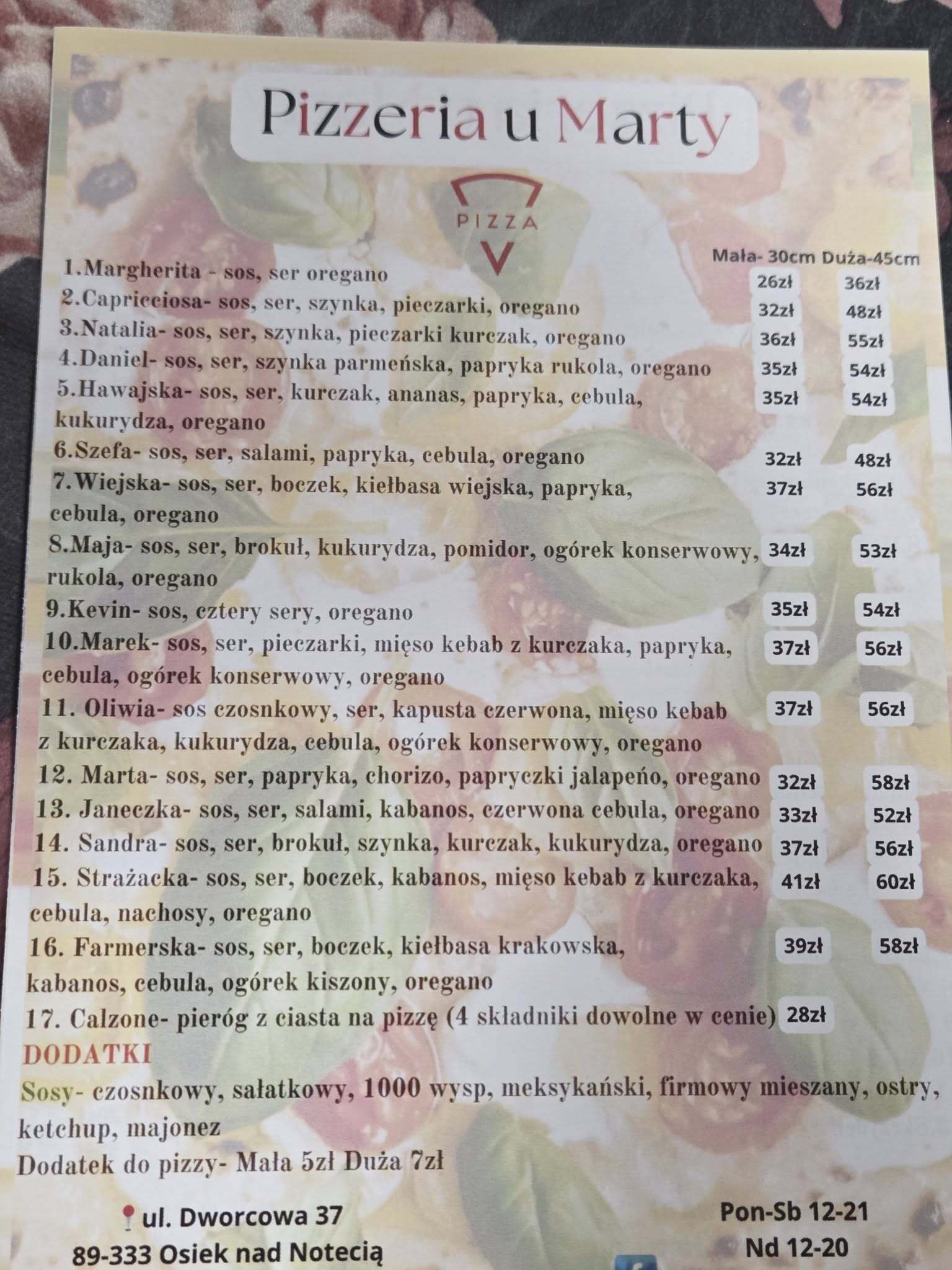 Od teraz w Pizzerii U Marty w Osiek nad Notecią możecie składać zamówienia online z odbiorem osobistym!